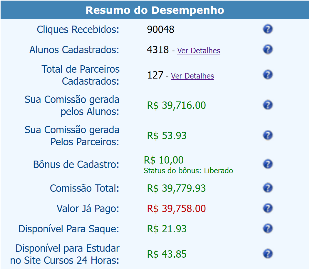 Lucros exatamente como os mostrados a seguir, obtidos com a divulgação de cursos online.